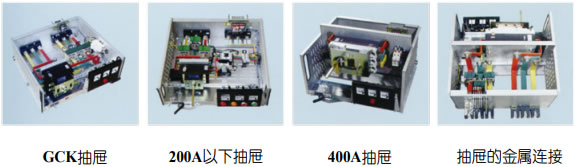 GCK系列采用柜架結(jié)構(gòu)組裝,結(jié)構(gòu)靈活,柜內(nèi)可裝不同的標準元器件,以適應各種使用要求。抽出式單元采用鋁合金滑動導軌和螺旋式推進機構(gòu),工作位置明顯,操作輕便、可靠。